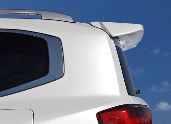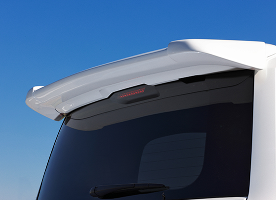 スポイラー本体に適度なエッジを効かせる事で、純正風の自然な装着感を実現しました。後方にかけて上向きになる形状でマウント出来るのでスポーティーなフォルムを演出します。