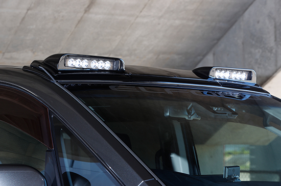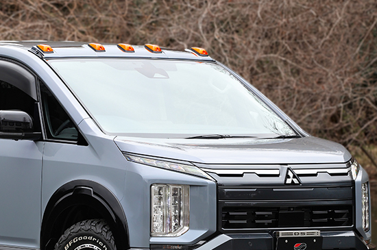 D:5専用のルーフマーカーランプセット。パネル部の取付けは、車体側へのダメージを最小限に抑えるため、ビス止め個所をルーフ両エンドのゴムモール部に限定。その他は両面テープ固定となっています。